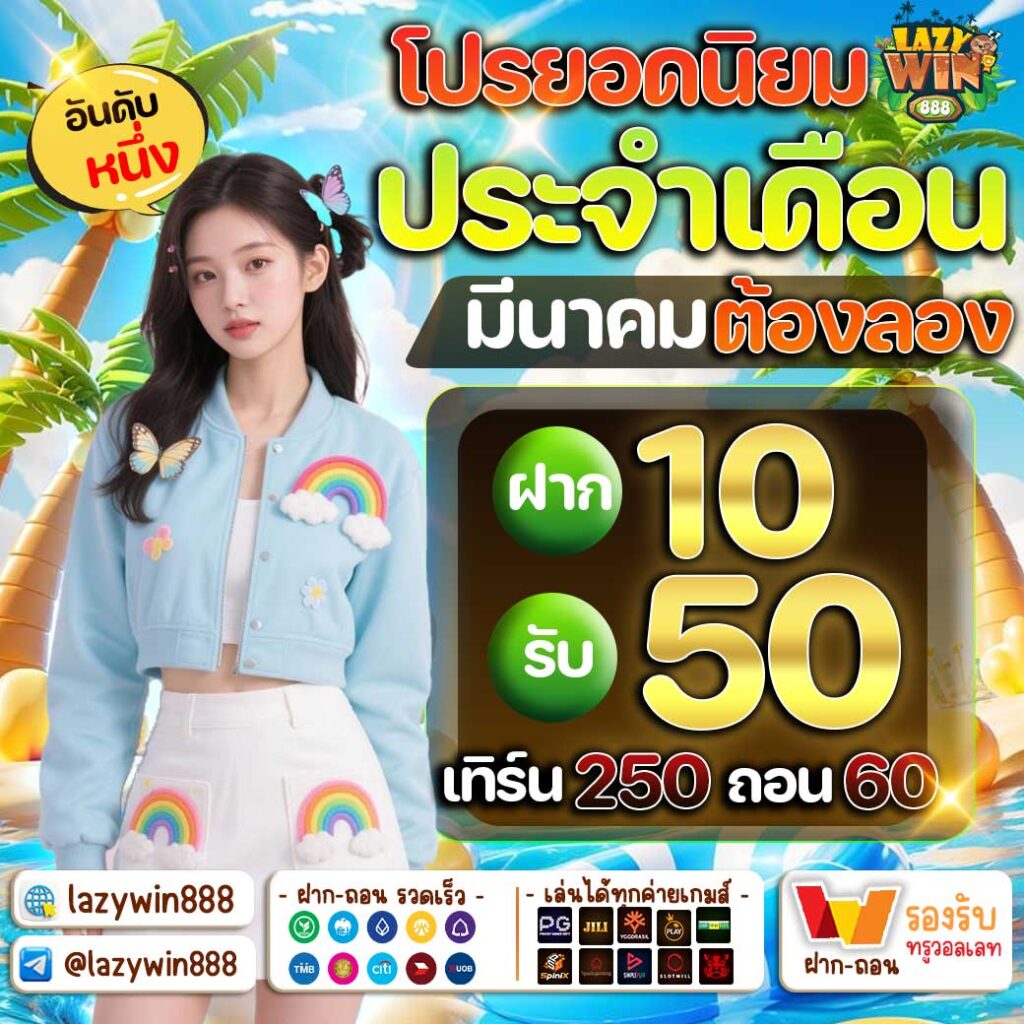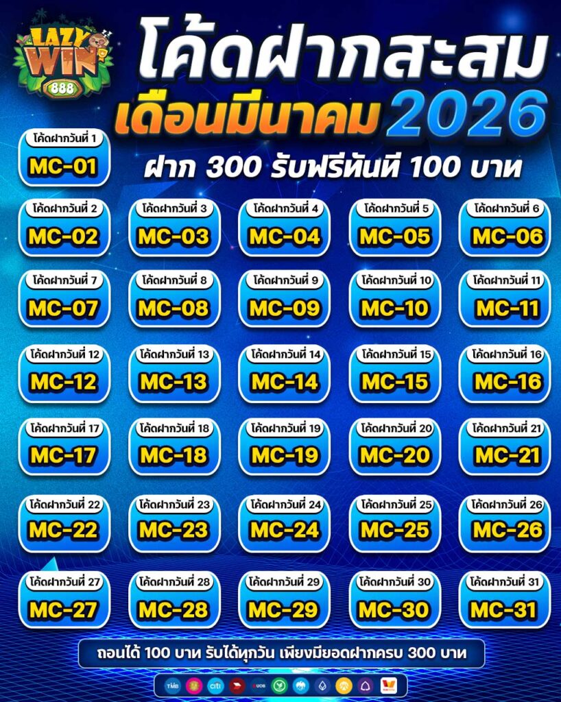 โค้ดฝากสะสม ประจำเดือน สำหรับสายลุยที่ชอบความคุ้มค่าแบบระยะยาว โปรโมชั่นโค้ดฝากสะสม ประจำเดือนของ Lazywin 888 ถือเป็นอีกหนึ่งตัวเลือกที่กำลังมาแรง เพราะยิ่งฝากมาก ยิ่งได้มาก สะสมครบตามเงื่อนไขก็รับโบนัสแบบจัดเต็มทันที โปรโมชั่นที่ให้ผู้ใช้งานทำการฝากเงินสะสมภายในระยะเวลาที่กำหนด (ส่วนใหญ่จะเป็น 30 วัน) เมื่อยอดฝากครบตามที่ระบบกำหนด จะได้รับโบนัสหรือรางวัลพิเศษทันที